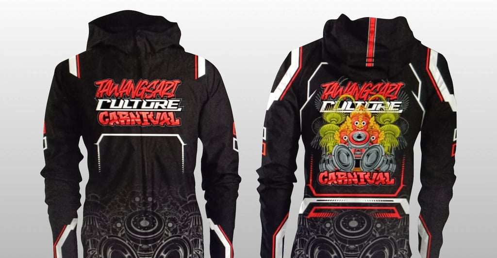 Dengan jaket karnaval custom, penampilanmu dijamin lebih keren dan berbeda dari peserta lain. Tidak perlu takut tampil biasa, karena jaket full printing dengan motif unik bisa membuat kamu jadi pusat perhatian sepanjang acara.